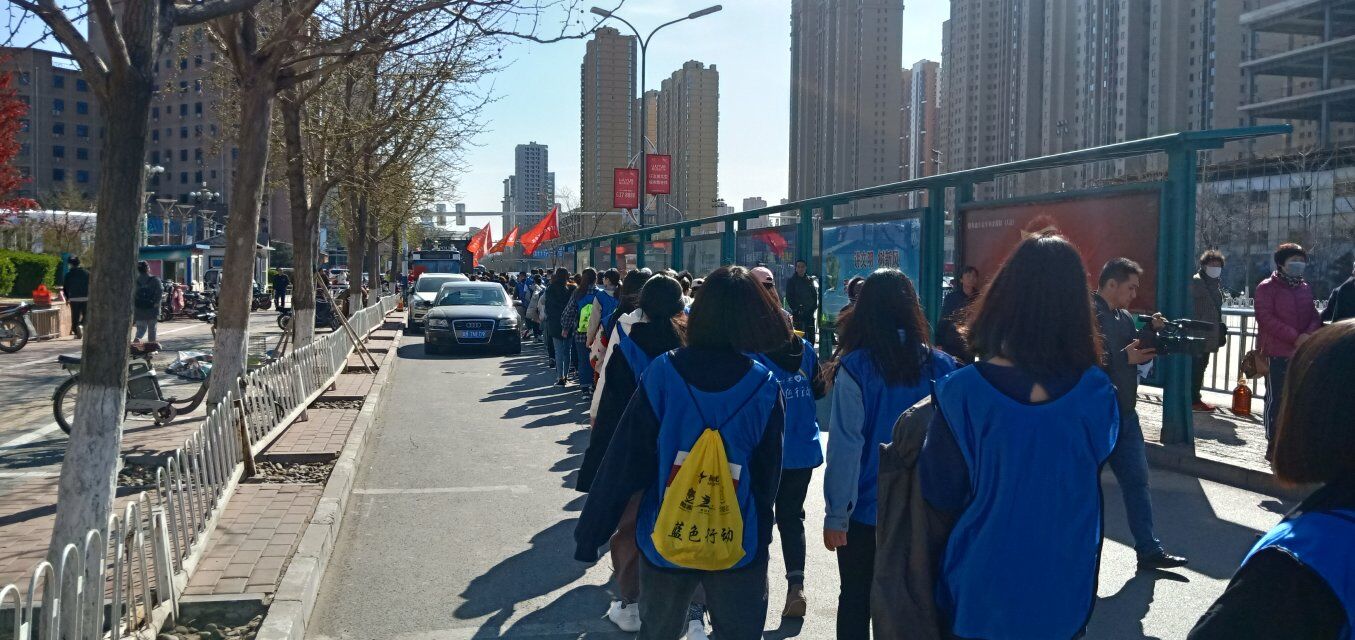 上午九点二十分暴走行动正式开始,义卖与暴走团队同时进行,志愿者们井然有序,在各个路口的指挥员的带领下,安全通过路线中的交通路口。青协副主席祁金玲始终跟随着大部队,确保每一个人不掉队。志愿者们脸上虽然有汗水但是想起那些星星的孩子,想起这次活动的意义,那些累便化为动力,更加坚定志愿者们前进的步伐。十一点四十分暴走团队到达目的地勒泰城。勒泰城广场有参加义演的志愿者和嘉宾,为了奉献爱心,让更多的人了解那些星星的孩子,不知疲倦地表演各种文艺节目。一直到下午,随着义卖活动的结束,蓝色行动也接近尾声。活动结束了但人们奉献爱心的事迹永远不会停止。