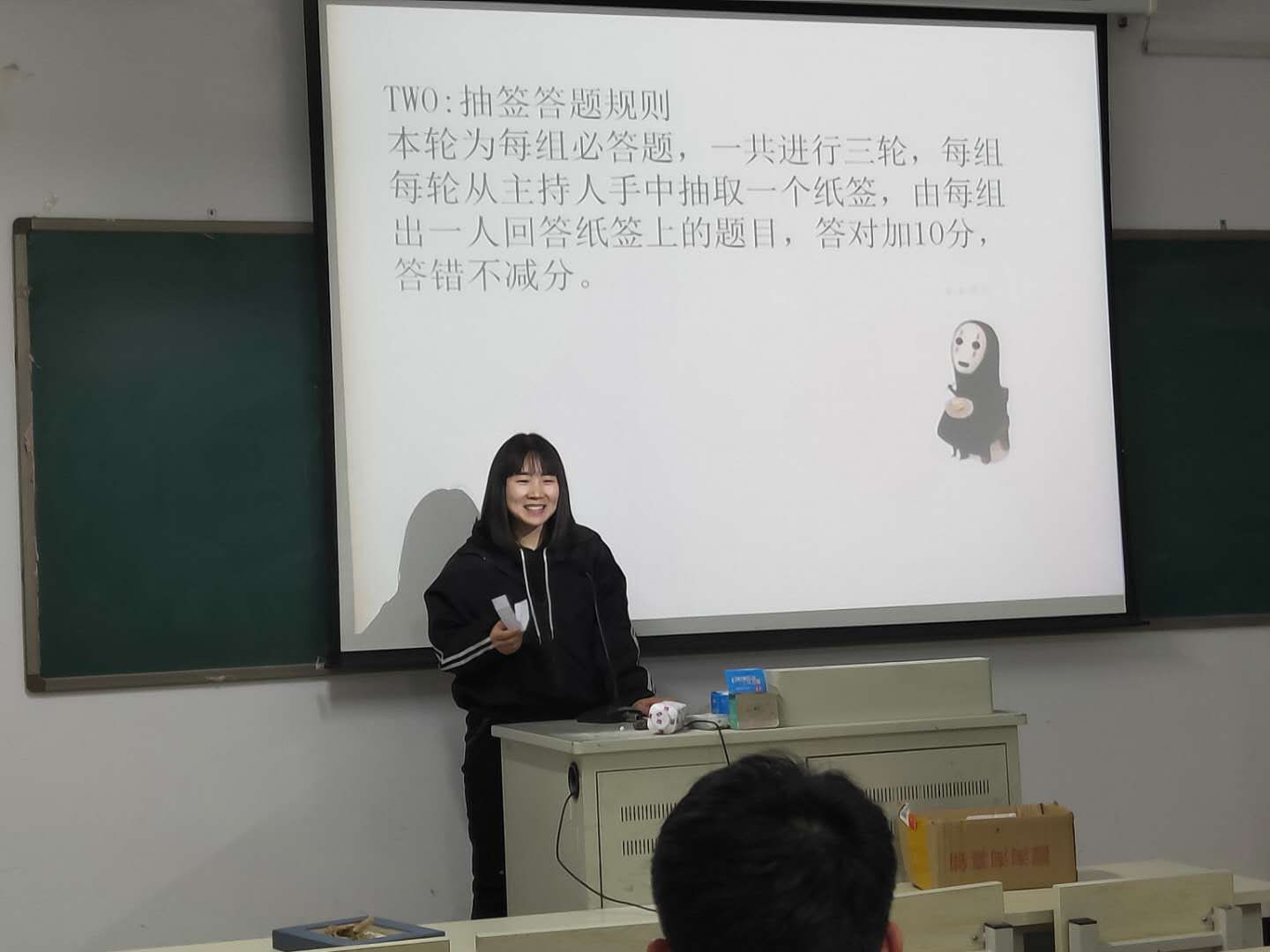 此次竞赛内容涵盖文明礼仪基本知识、公民道德建设基本知识及精神文明创建知识等,采取必答题、风险题和击鼓传花答题等形式进行。活动以班级为单位分为13个小组,每组有4名代表参与答题。晚上7点15分,在主持人的宣布下,竞赛在紧张、欢快的氛围中开始,选手们信心十足,在答题环节中各显神通,精彩纷呈。