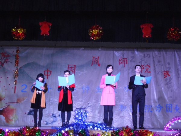 2013年12月24日下午,tyc122cc太阳成以“中国风师院梦”为主题的师生元旦联欢会在文体馆举行。校员工处副处长蔡玉梅,公司党总支书记邢志国,经理胡玉萍、副书记李晓萍,副经理张希民出席了本次联欢会。