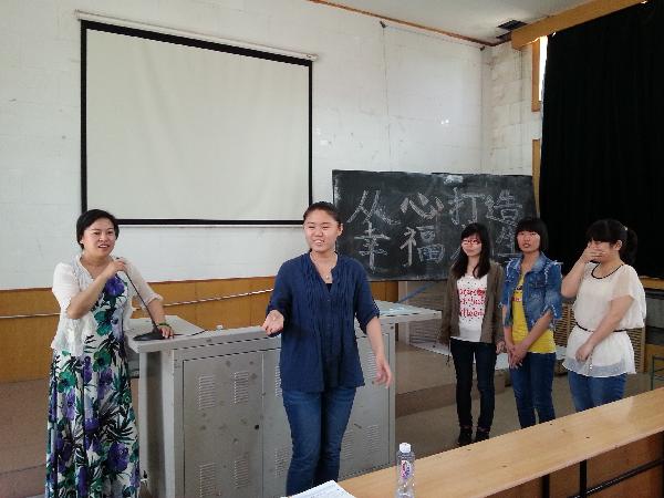 首先,曲经理结合自己学习心理学的人生经历,向同学们展示了心理学所带给自身的心灵财富。人生的每一个阶段都需要心灵的指引,人生的每一种历险和每一次跨越都需要心灵的能量和机智,而心理学可以使心灵的各个侧面协同发展,使心灵的结构呈优化趋势,然后,曲经理以马斯洛的需要层次理论为切入点,引领大家从物质和精神两方面来探讨幸福的本质。经过师生间激烈的讨论,结合精彩的事例,大家明白了幸福是一种由心而生的满足。人的大多数痛苦不是来源于现在而是来源于过去和未来,来源于比较。来源于人们给自己设定的标签。最后,曲老师引导同学们从“关系”入手,现场带领大家做了一个角色扮演。通过曲经理现场对每个角色的分析,使同学们了解到每个人都是关系的总合,而外界所有的关系也都是自身关系的重复,每个人的健康发展都是一次关系的重整。