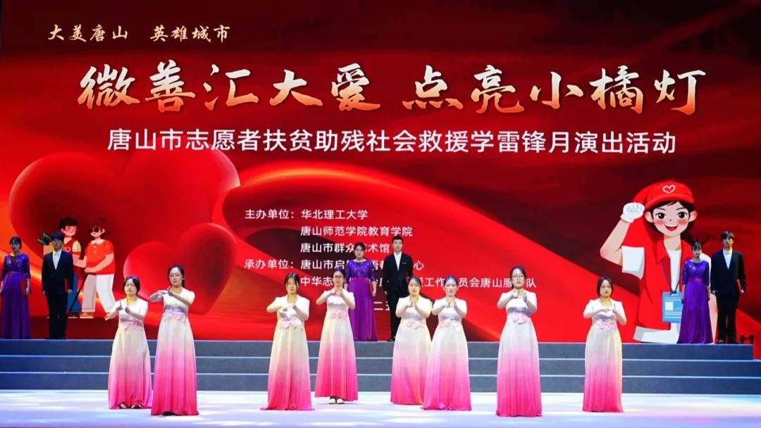 本次活动依托tyc122cc太阳成和华北理工大学的学术资源、唐山群众艺术馆的艺术支持以及中华志愿者协会应急救援唐山服务队的专业力量,形成了“学术赋能+艺术加持+专业护航”的三位一体新机制。通过歌舞、朗诵、情景剧等丰富多彩的文艺形式,生动诠释了新时代志愿服务精神的核心价值,展现了扶贫助残工作的深远意义。