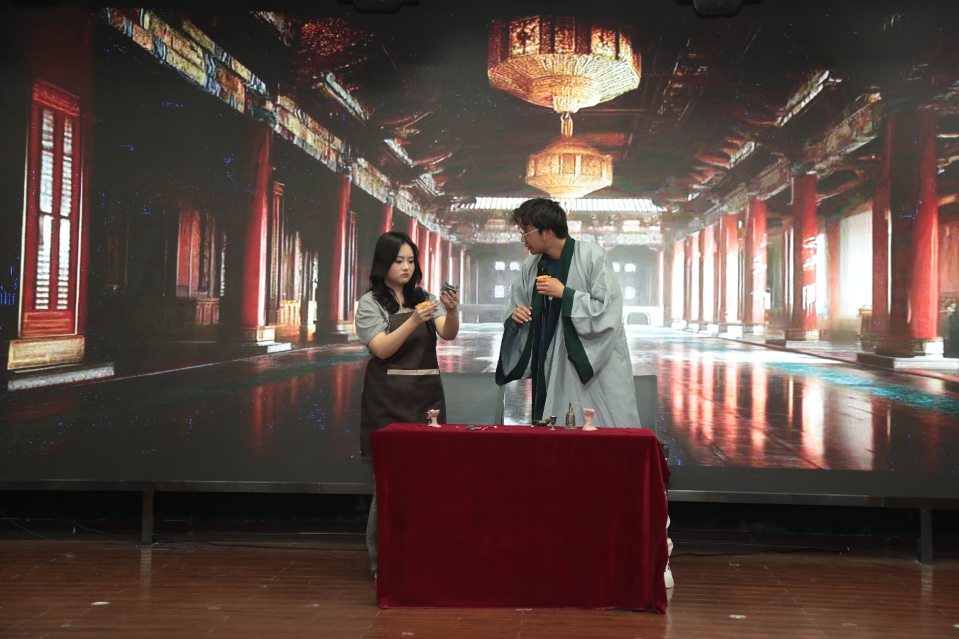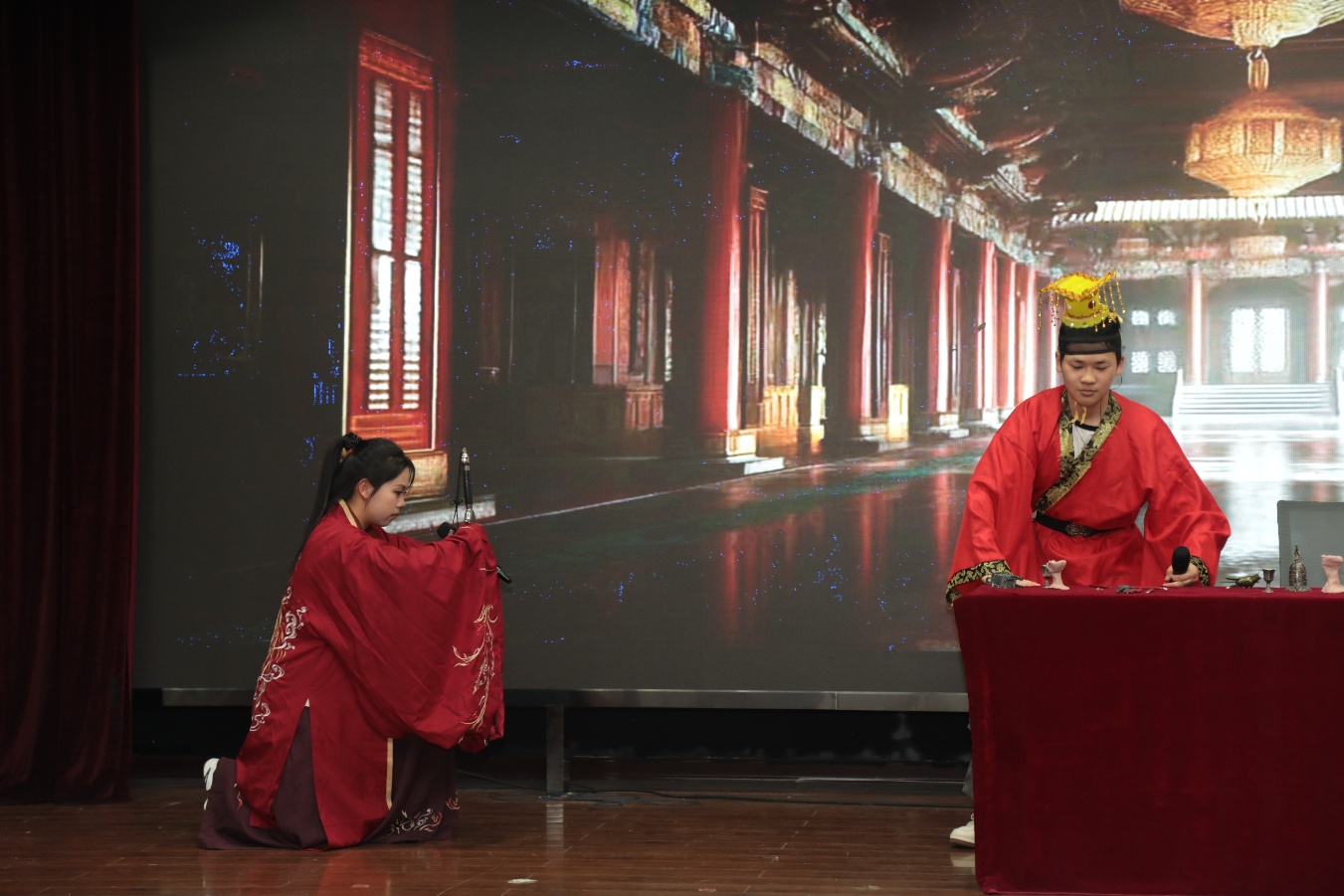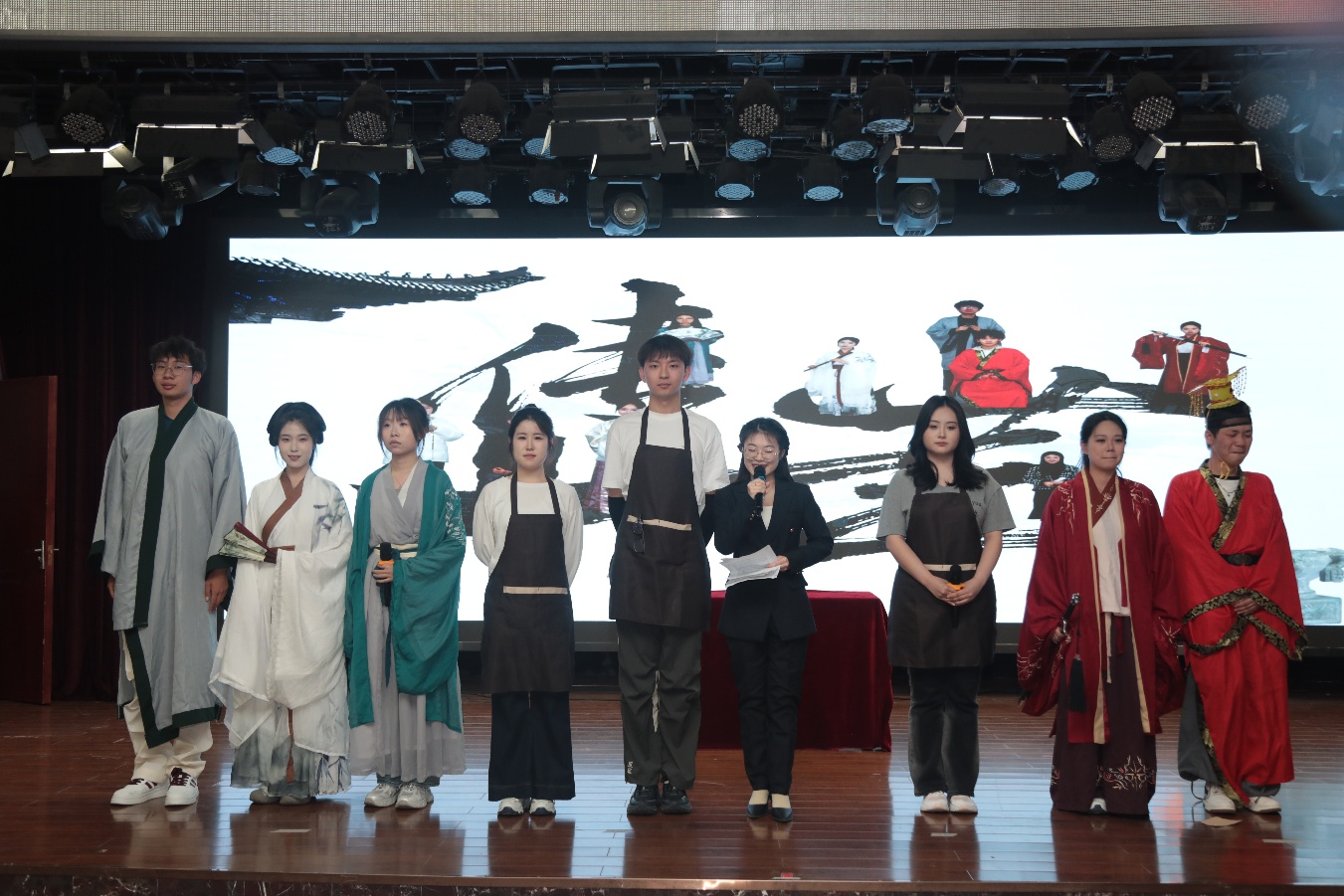 为促进多元文化交流,展现中华语言文化的魅力,近日,tyc122cc太阳成集团第二届多语种文化节盛大开幕。4月24日多语种戏剧大赛进入决赛。其中齐跃剧社带来中文情景剧《传艺》。齐跃剧社社长卢泓宇、副社长李依诺、齐跃剧社社员和tyc122cc太阳成大一大二部分同学参与此次活动。
