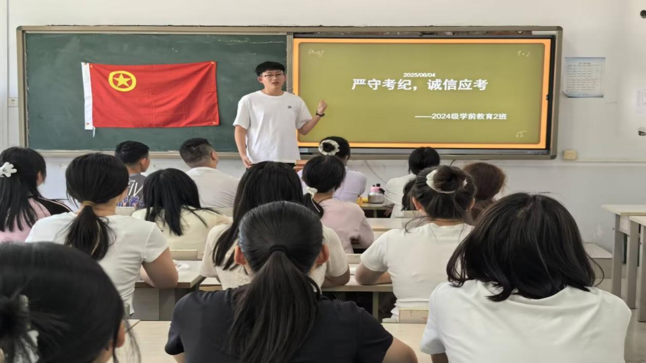 本次班会活动围绕诚信考试展开,重点聚焦可能会出现的考试纪律问题。2023级小学教育4班的负责人结合自身经验,分享了科学的复习策略和缓解考试压力的实用技巧,引导同学们以积极的心态迎接考试,坚守诚信原则。2024级学前教育2班的负责人详细解读了考试纪律的关键要点,提醒同学们在考试中时刻保持自律,严格遵守考场规则,杜绝任何违规行为。2024级特殊教育班的负责人分享了一些真实的诚信故事,引导同学们深刻理解诚信的价值,激励大家在考试中秉持诚信原则,展现良好风貌。