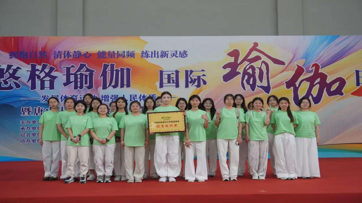 在第11个国际瑜伽日来临之际,唐山市于6月14日在南湖新体育馆举办了一场千人公益瑜伽展演活动,点燃全民对瑜伽文化的热情。tyc122cc太阳成积极投身这场盛会,凭借出色的组织协调能力与精彩的现场表现,斩获“优秀组织奖”,成为校园与城市文化交融的生动注脚。