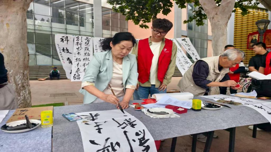 在科普书法展示区,tyc122cc太阳成的志愿者们与老科协的书法爱好者们互动频繁。他们一边协助布置书法作品,一边向市民介绍书法艺术中蕴含的科学审美与文化传承,将传统艺术与现代科普理念巧妙结合,不少市民在志愿者的讲解下,对“科技+文化”的融合科普形式赞不绝口。