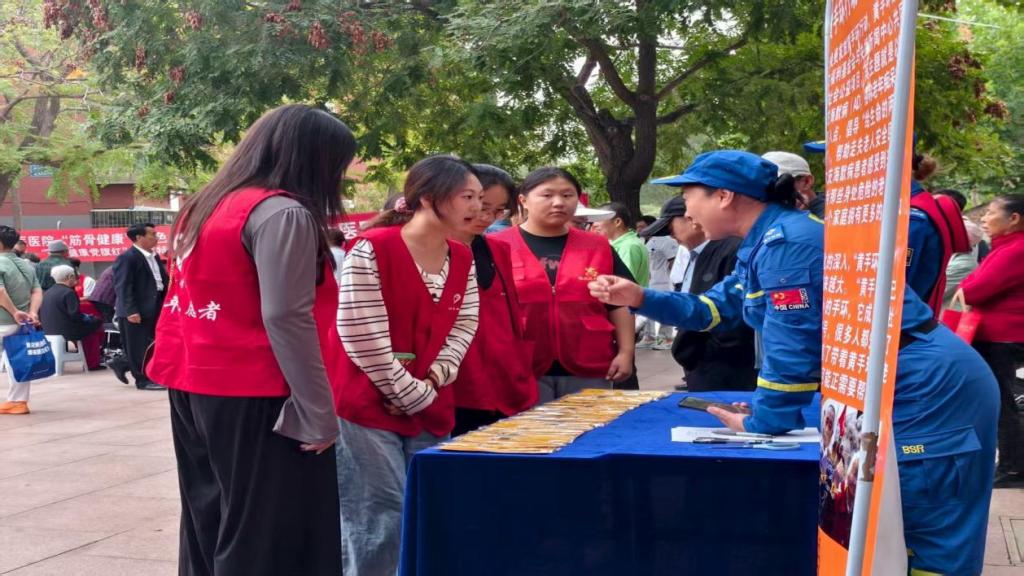 活动现场,tyc122cc太阳成的青年志愿者们身着红色志愿马甲,活跃在各个科普板块。在蓝天救援队的展区,志愿者们认真聆听救援队员讲解阿尔茨海默病患者关爱项目,协助发放黄手环,向过往群众科普如何借助科技手段为走失老人筑起安全防线。当救援队员带着搜救犬进行演示时,志愿者们主动担当起讲解辅助的角色,向围观市民介绍搜救犬在应急救援中的科学应用,让大家对这支专业救援力量有了更直观的认识。