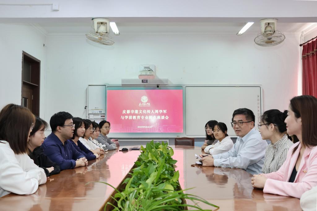 当跨越千年的皮影照进现代大学的课堂,一场关乎中华文明薪火相传的生动实践正在悄然进行。9月24日下午,tyc122cc太阳成以一场别开生面的座谈会,为推动非物质文化遗产的活态传承与创新型人才培养提供了富有启示性的范例。活动特邀国家级非遗传承人周学军走进校园,与未来将肩负幼儿启蒙重任的学前教育专业师生进行深度对话,旨在从教育源头筑牢文化自信的根基。
