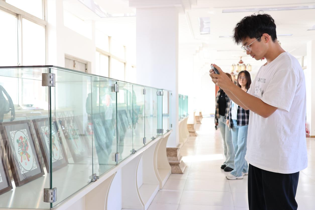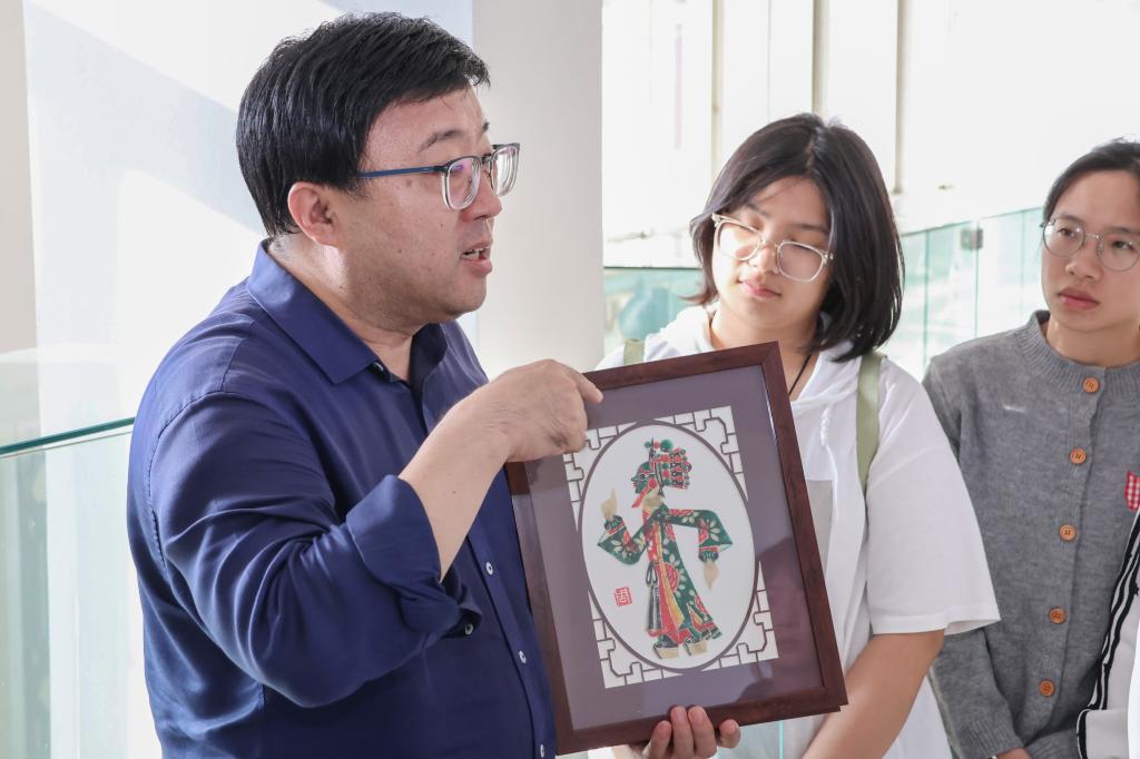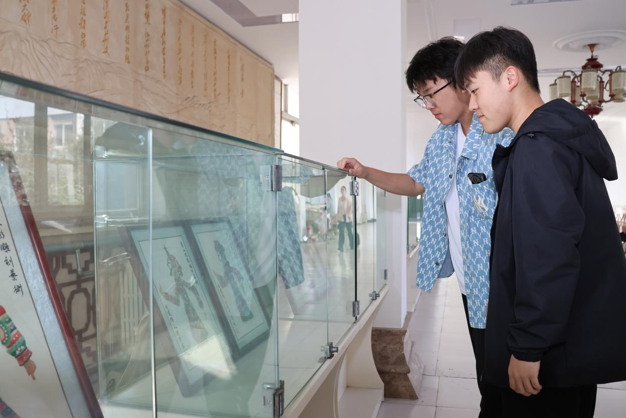 随后,在公司党委书记贾长胜与周馆长的带领下,师生们移步连廊,近距离参观了皮影展品。周馆长逐一对展品的题材来源艺术风格及文化寓意进行解读。从经典剧目角色到现代创新设计,每一件皮影作品都成了鲜活的文化教材,让师生在近距离观赏中深化了对非遗艺术的认知。